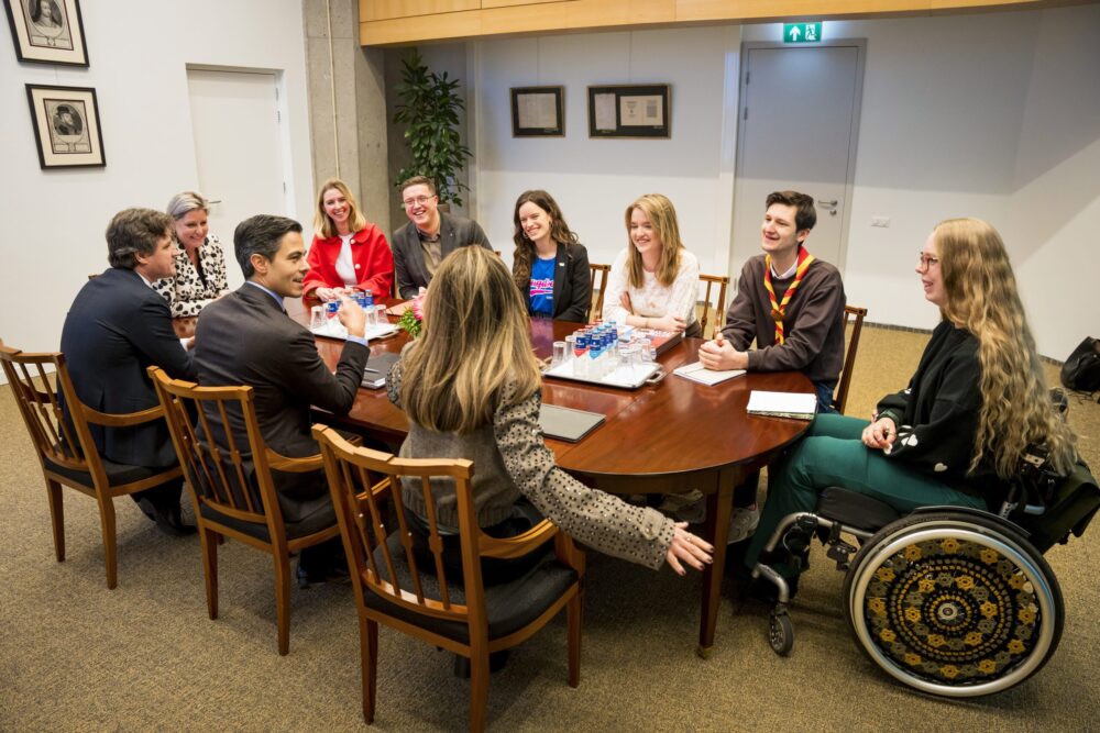 Vertegenwoordigers van de Nationale Jeugdraad en SERjongerenplatform voorafgaand aan een gesprek met informateur Rianne Letschert in het formatiegebied. Letschert informeert met de fractievoorzitters om de basis te leggen voor een regeerakkoord. LINA SELG / ANP